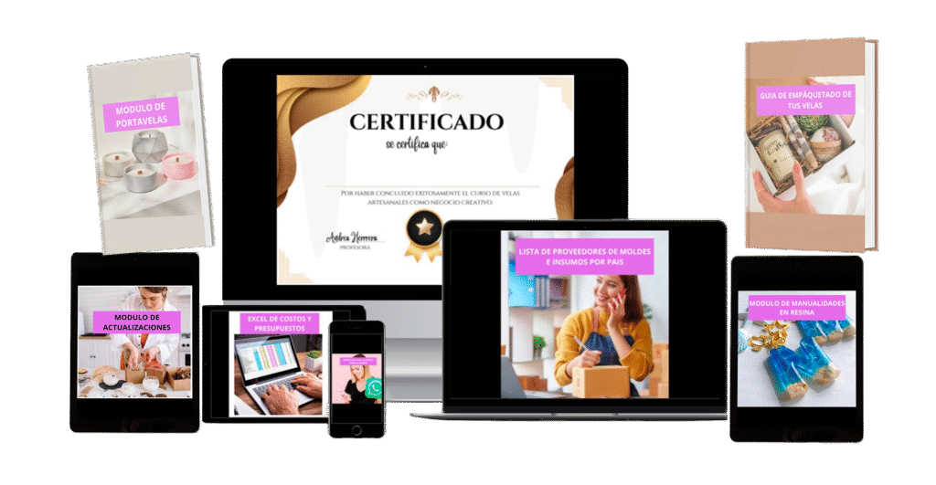 OBTENDRAS TODO EL CONOCIMIENTO PARA CREAR VELAS UNICAS Y HERMOSAS EN MAS DE 135 CLASES GRABADAS EN VIDEO.